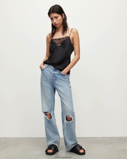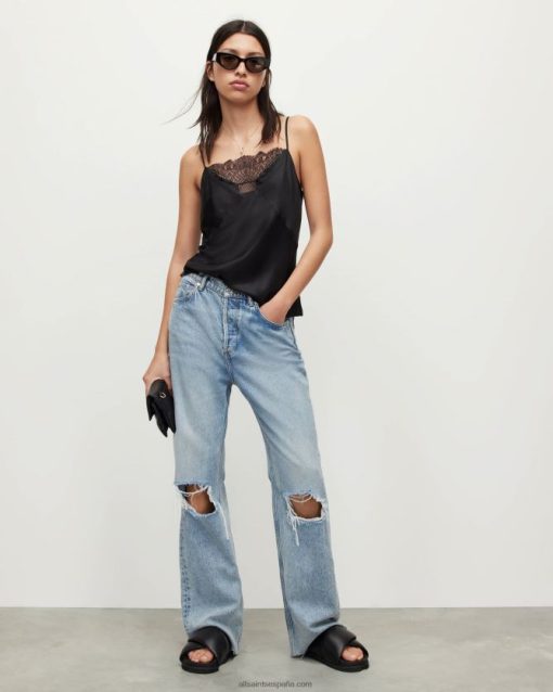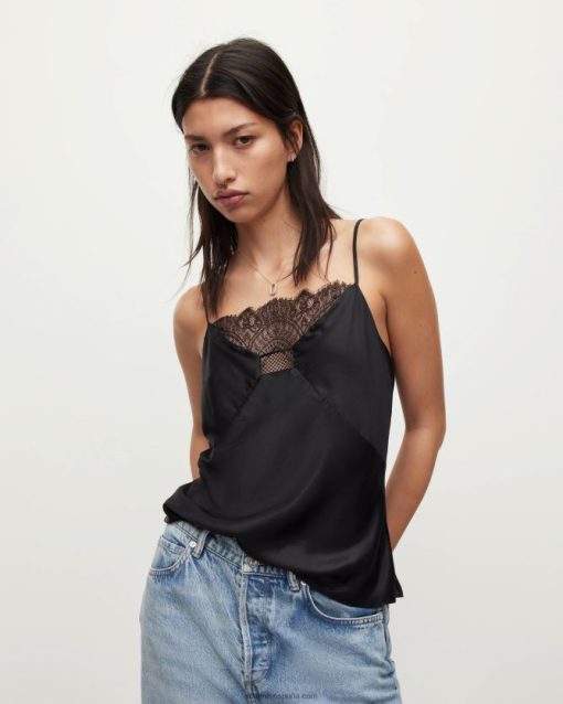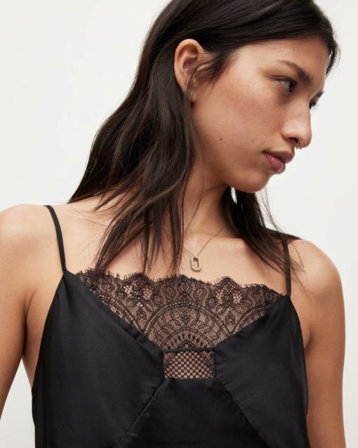 El eldia tiene la forma de una camisola clásica. Confeccionado con un tejido ligero de mezcla de seda con paneles de encaje y ribetes decorados. las correas son ajustables, encontrarás el ajuste perfecto.