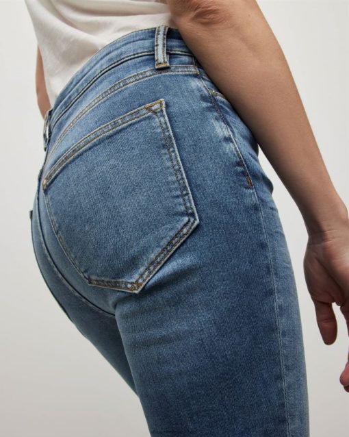 el molinero con una ventaja. Confeccionados con mezclilla elástica, son supersuaves y cómodos con detalles desgastados en la rodilla. en forma de una silueta de mediana altura con una pierna delgada.