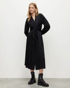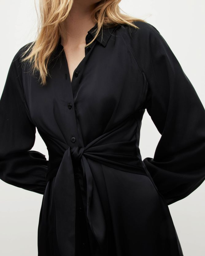 la clanetta es una nueva versión de un vestido camisero. en forma de una longitud midi con todos los detalles clásicos. hemos usado un cinturón llamativo: agrega forma.