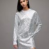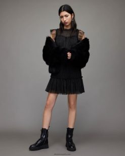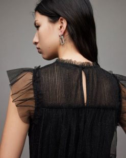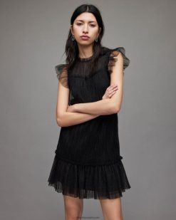 AllSaints vestido corto de tul perri mujer L02RH2162 negro metalizado