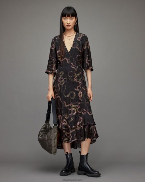 AllSaints vestido de tempestad delana mujer L02RH2167 de color verde oscuro