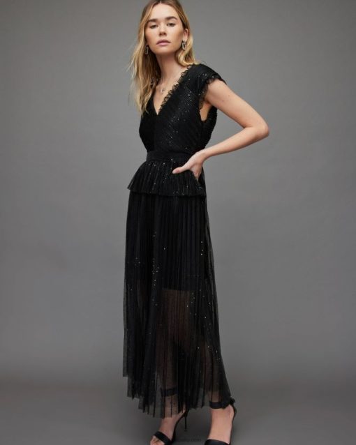 Vuelve el aderezo llamativo. hazlo con el vestido indra. está hecho de tul de malla reciclado con un brillo que lo atraviesa. fruncido en la cintura para un ajuste favorecedor con pliegues y volantes que crean una estructura sutil. se completa con bolsillos: un cambio de juego.