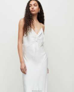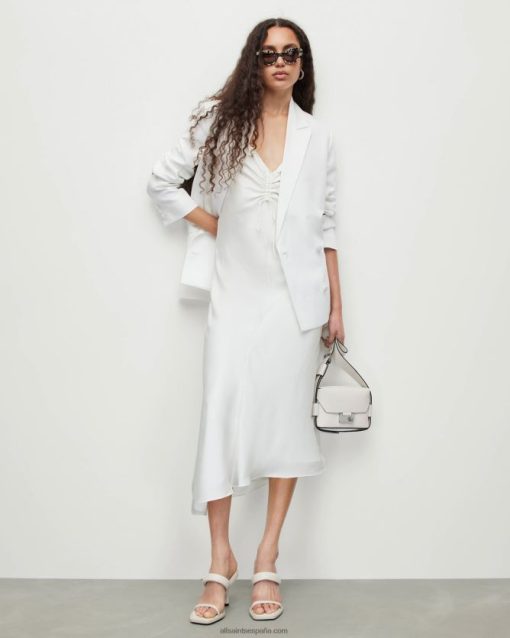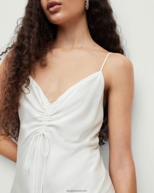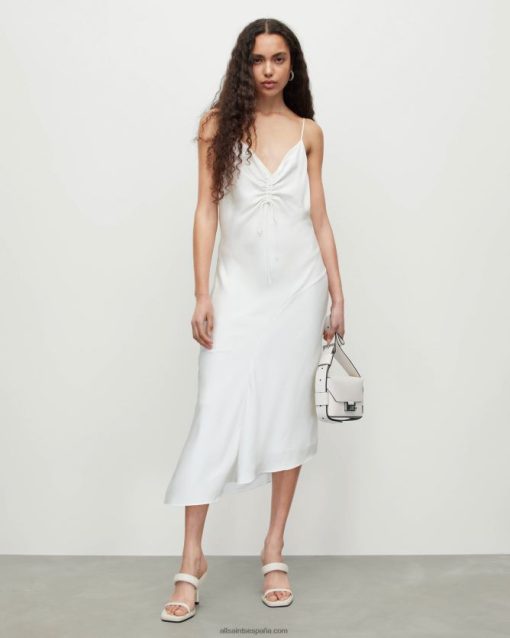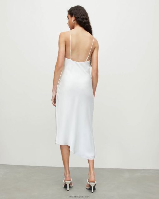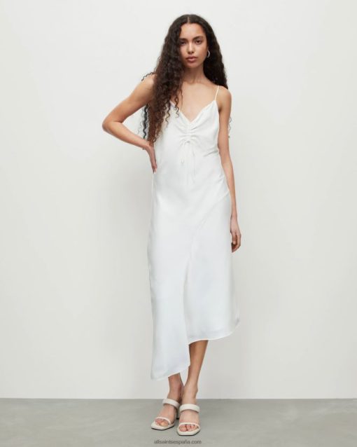 un básico sensual: este es el vestido alexia. Confeccionado con un tejido reciclado, el escote en V se acentúa con un cordón fruncido en el busto. cortado al bies con un dobladillo asimétrico para darle una caída favorecedora.