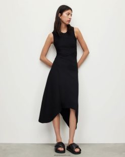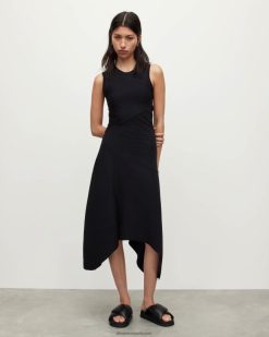 el vestido gia. es una simple pieza de referencia. Tejido mezcla de algodón, textura acanalada. con un dobladillo flotante asimétrico, esa es nuestra firma.