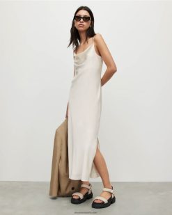 AllSaints vestido midi hadley mujer L02RH2108 blanco ártico