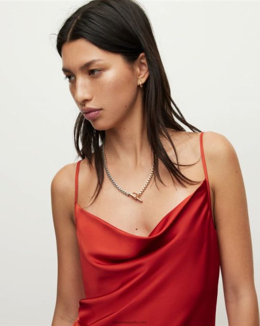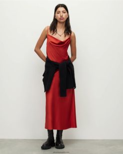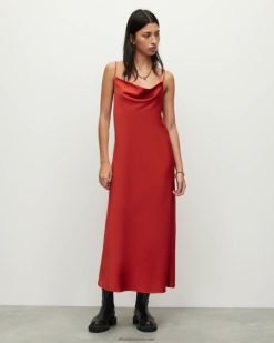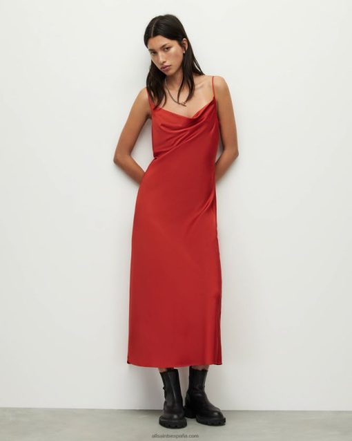 AllSaints vestido midi hadley mujer L02RH292 arcilla roja