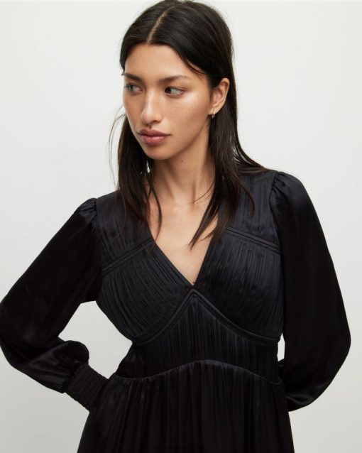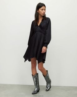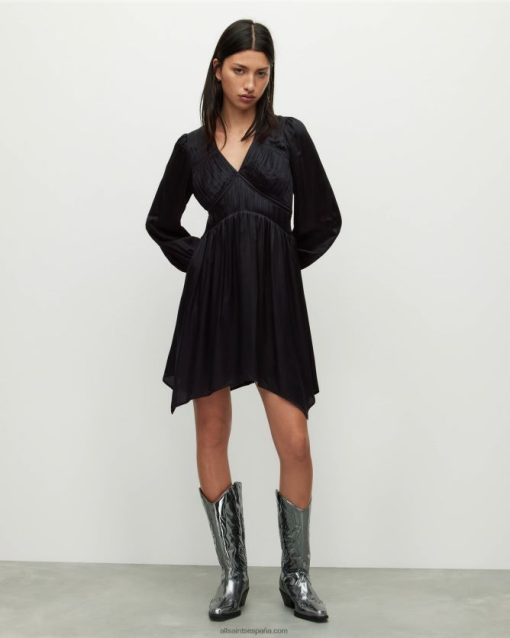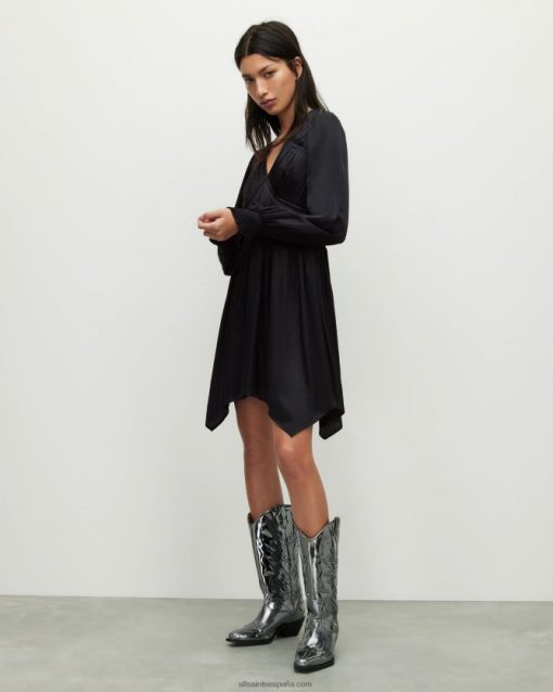 AllSaints vestido mini esta de mezcla de seda mujer L02RH249 negro