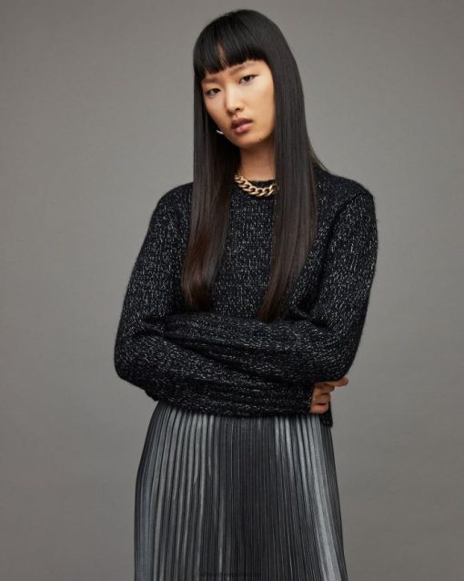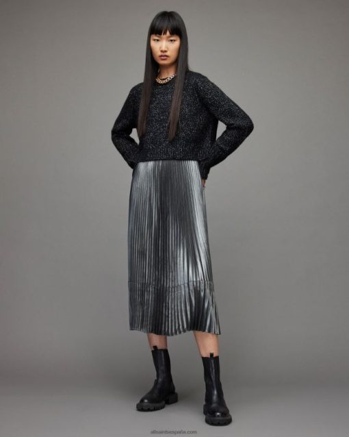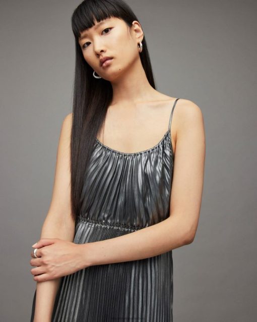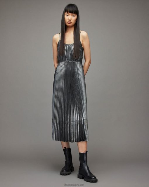 AllSaints vestido silvia 2 en 1 mujer L02RH2178 negro/plata